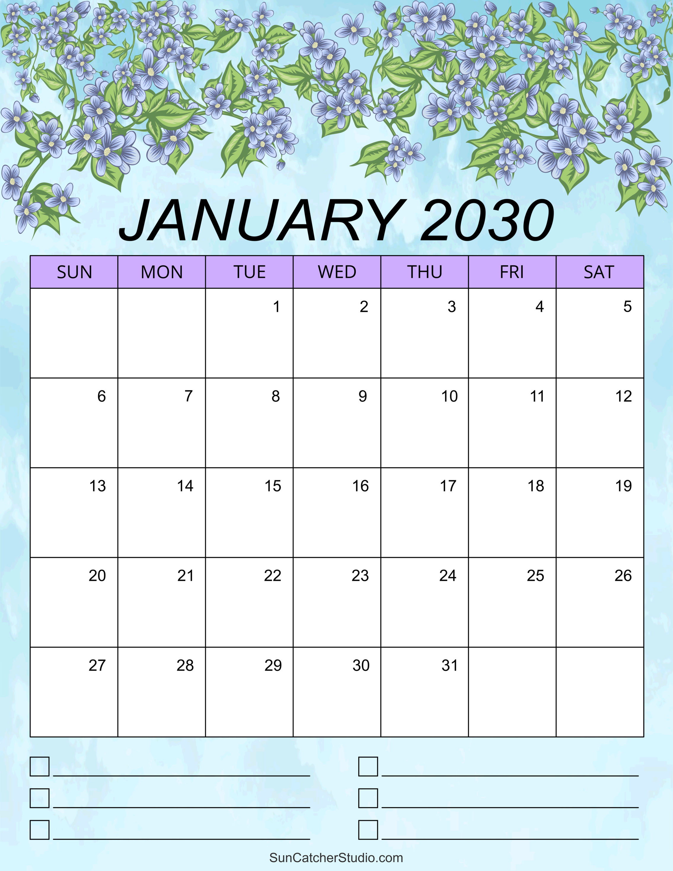 Free printable January 2030 calendar. These easy to print and download calendars are available in PDF and PNG formats. Choose from a variety of designs and layouts that suit your needs. For additional ideas see printable paper and more calendars.