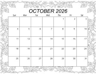 Printable October 2026 Calendar
