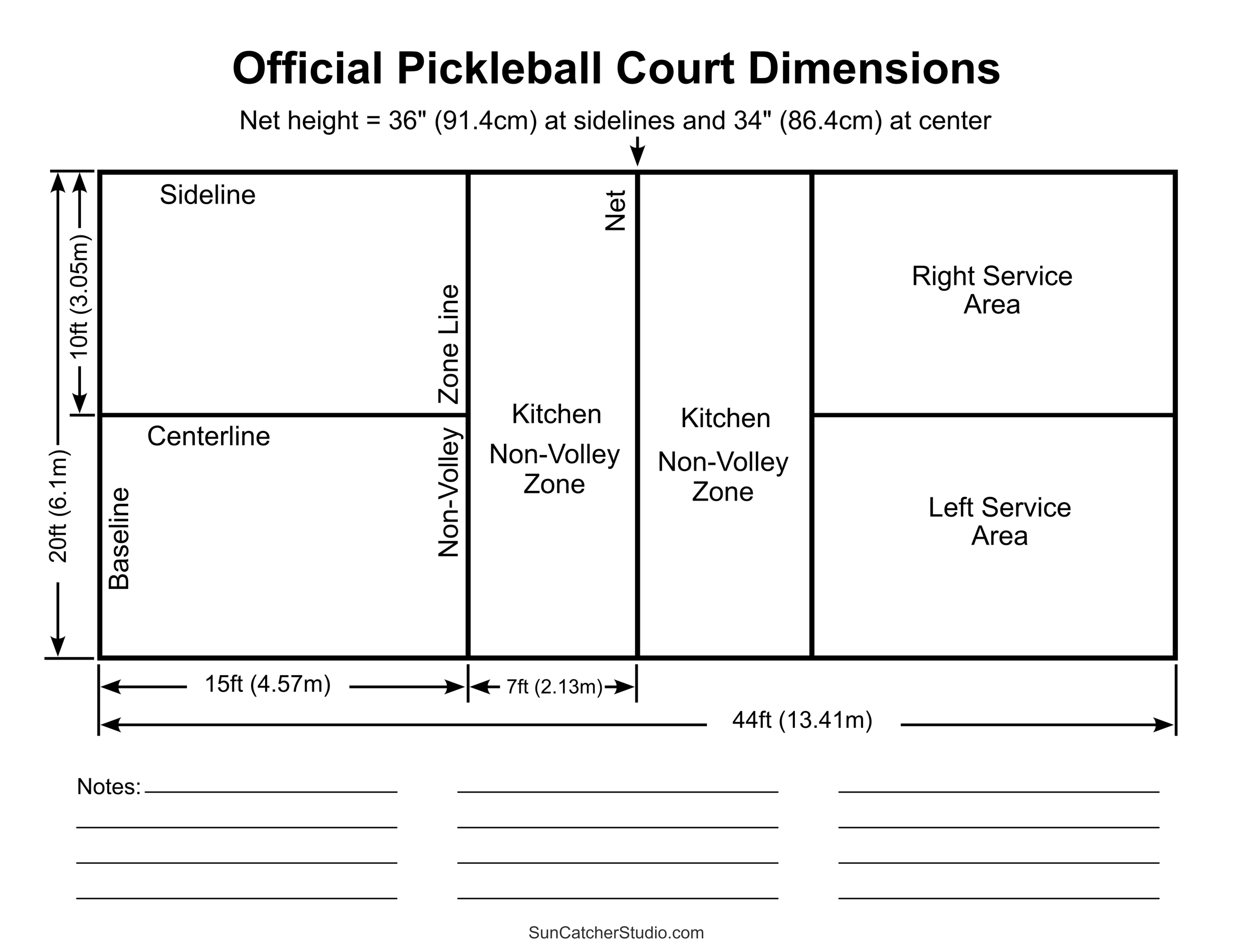 Free printable official pickleball court dimensions and size. Whether you’re setting up in your backyard or marking a public court, this easy-to-use reference ensures accurate, regulation measurements every time. For more ideas see printables and court and field diagrams.