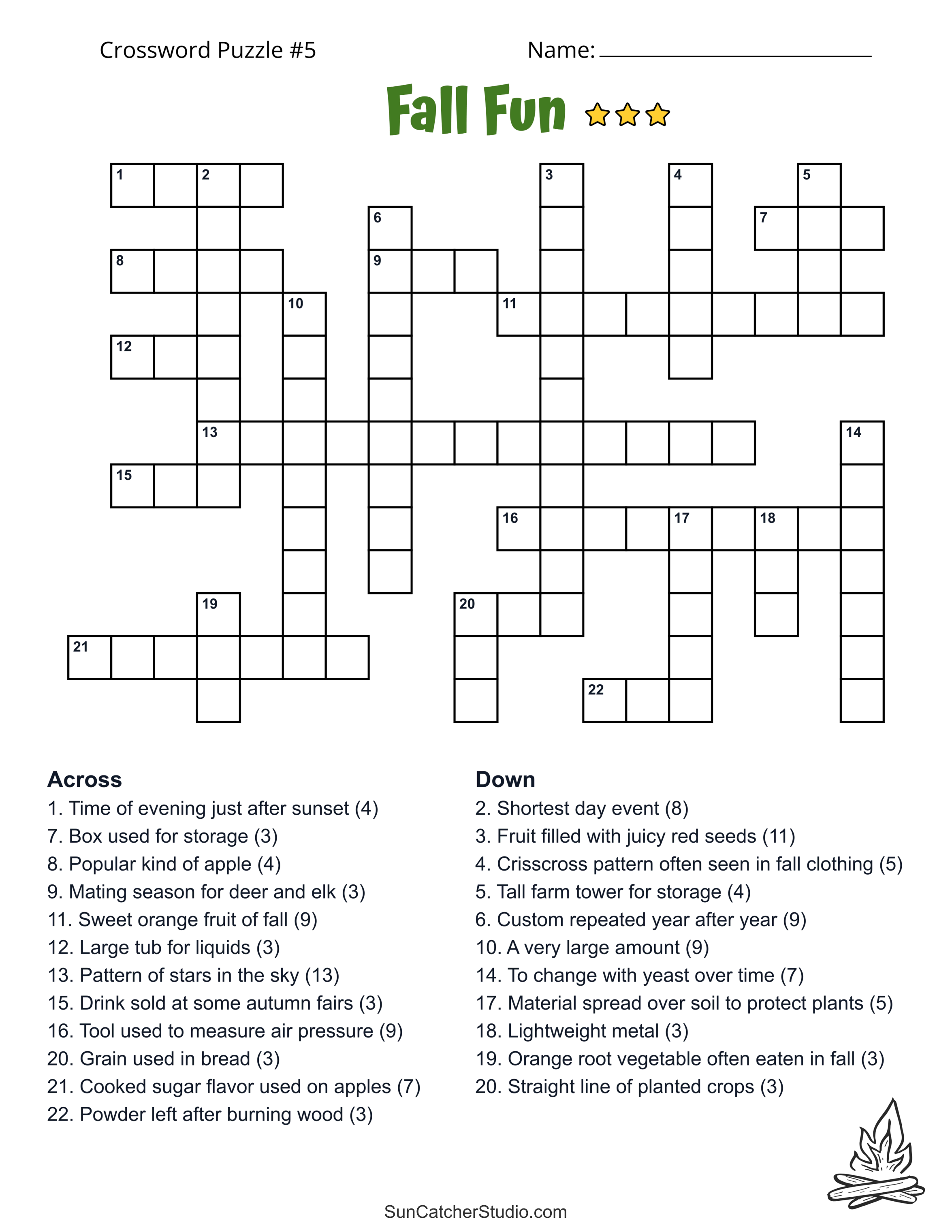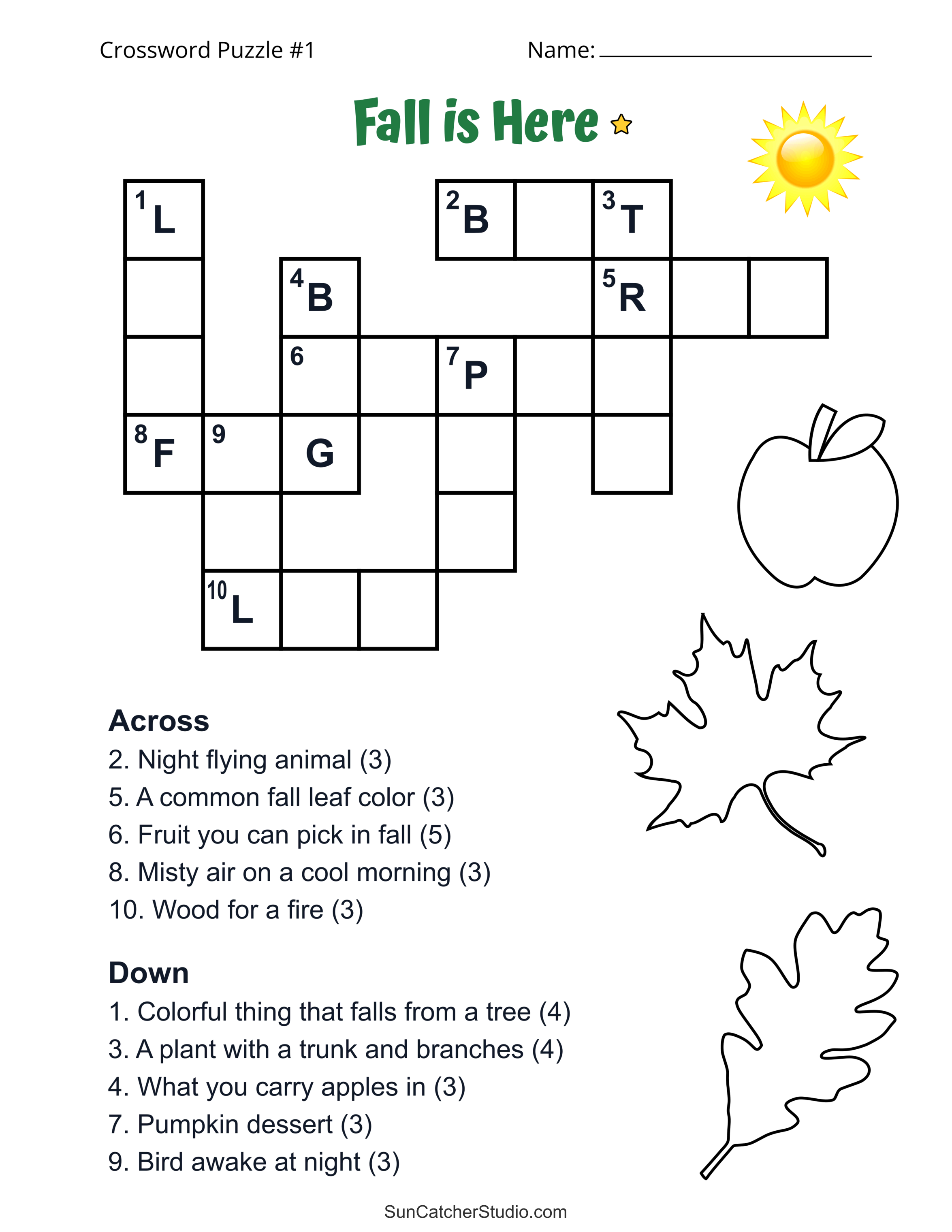Free Printable Fall Crossword Puzzles (Easy to Hard)