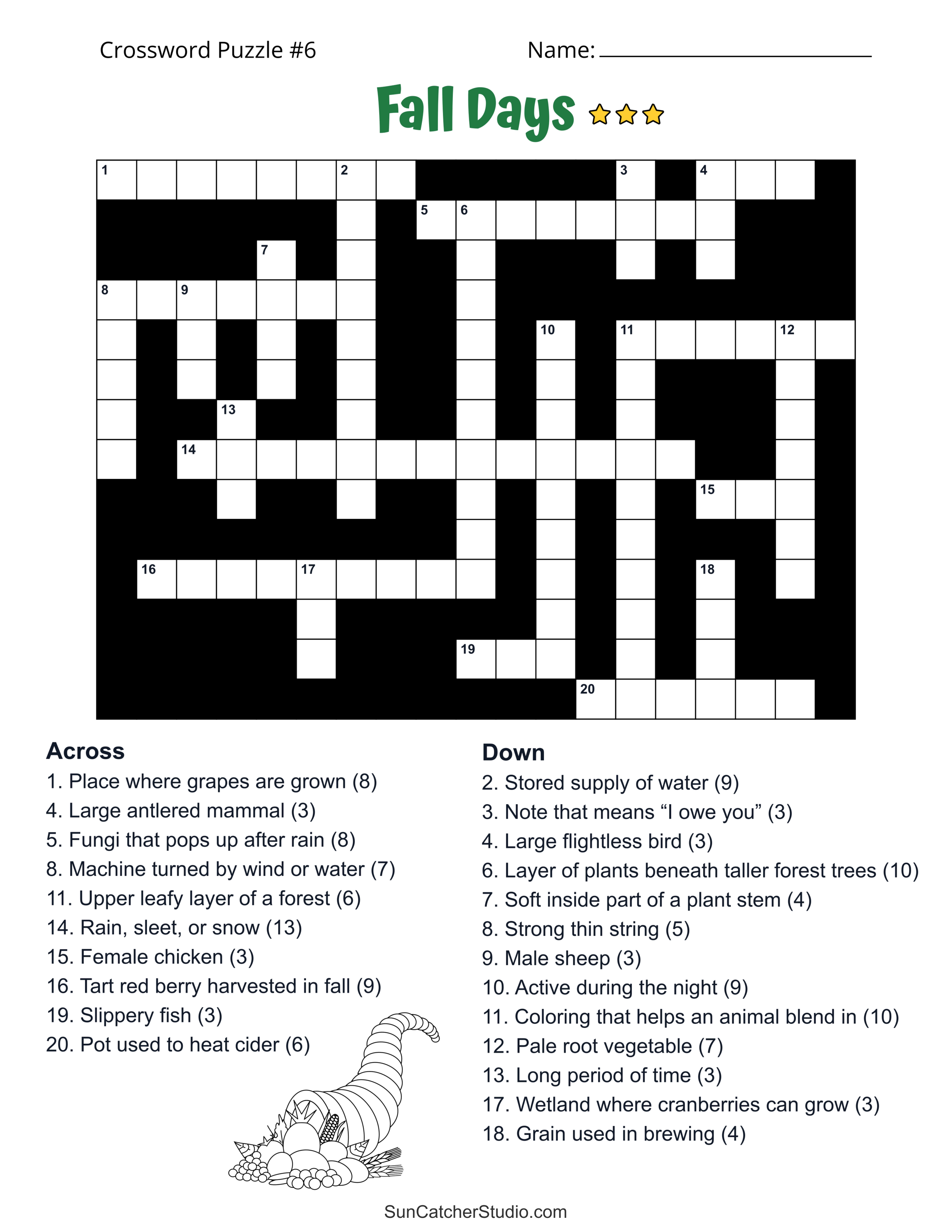 Best of all, our free printable fall crossword puzzles are easy to access and simple to use. Just print them out and start solving right away. Whether you need a quick classroom activity, a festive party game, or a relaxing brain teaser, these seasonal puzzles are a wonderful way to enjoy everything autumn has to offer. However, please note that our artwork and worksheets may not be resold or hosted on other websites.