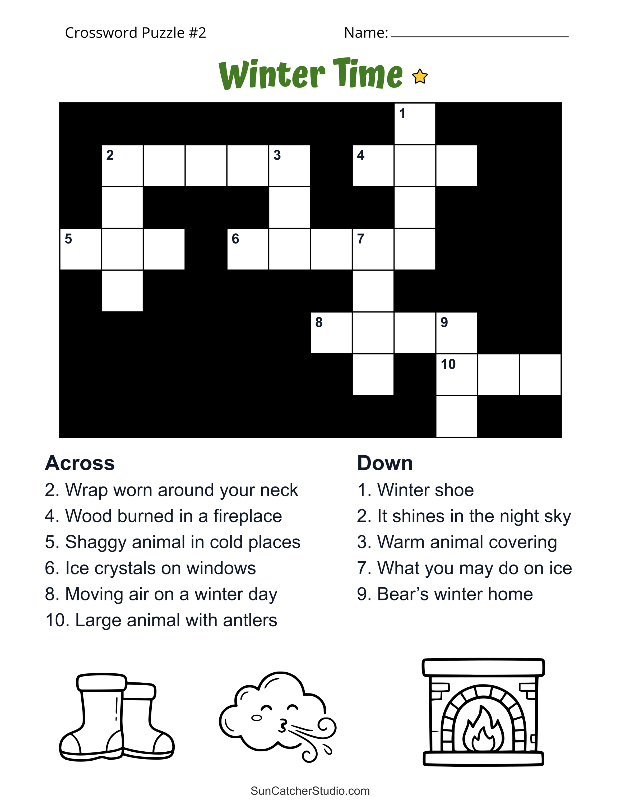 Whether you love snowflakes, sledding, hot cocoa, or winter wildlife, our free printable winter crossword puzzles bring the spirit of the season to every page. Try one today and make learning and relaxing more enjoyable all winter long. However, please note that our artwork and worksheets may not be resold or hosted on other websites.
