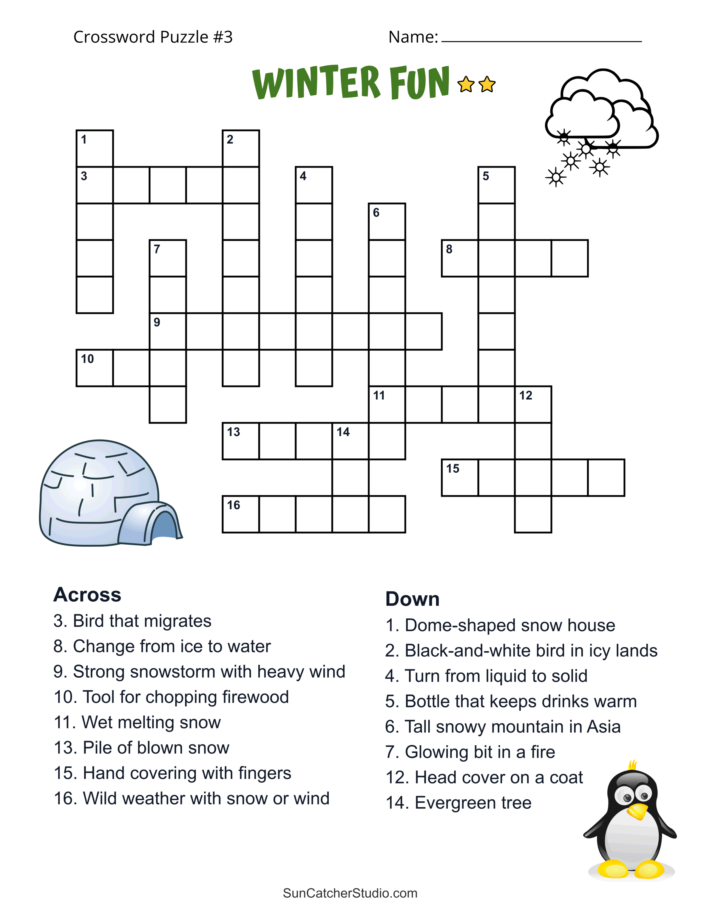 Free Printable Winter Crossword Puzzles (Easy to Hard)
