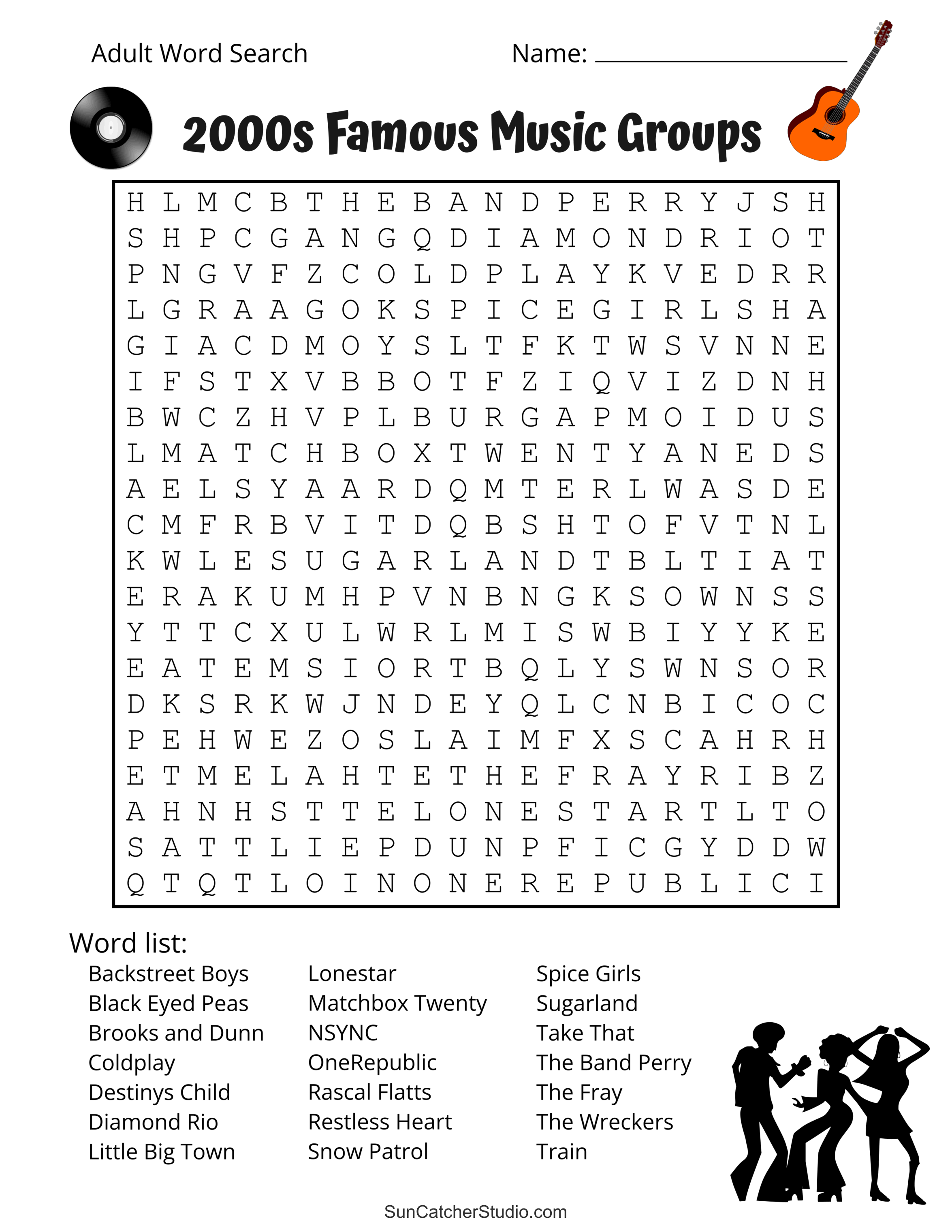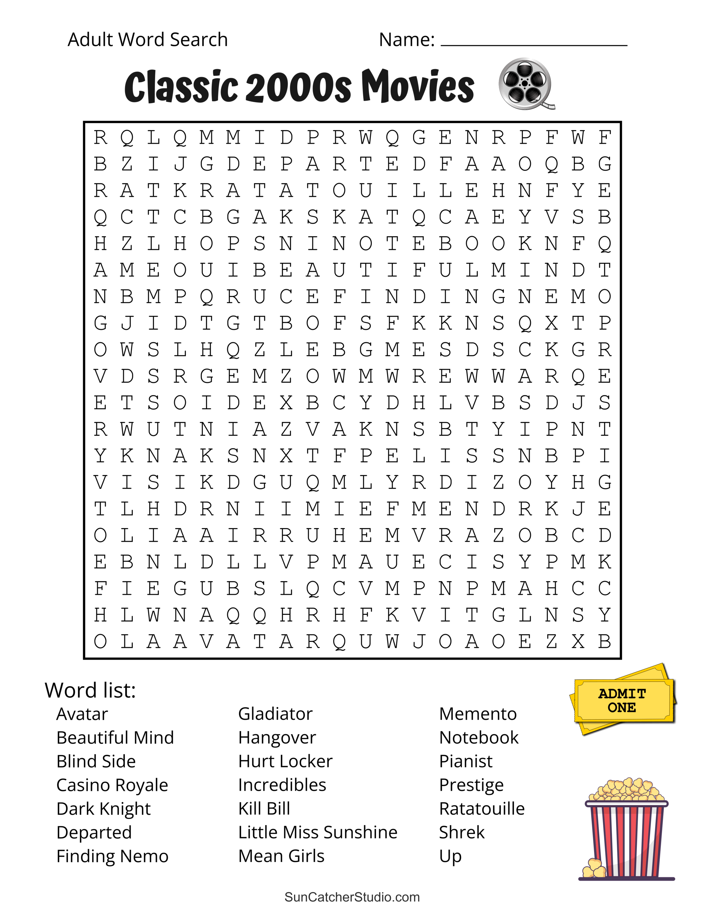 Best of all, our 2000s word search puzzles are completely free to print and share. Just download, print, and start searching! It’s a simple, screen-free way to enjoy retro entertainment while sharpening your focus and memory skills. However, please note that our artwork may not be resold or hosted on other websites.
